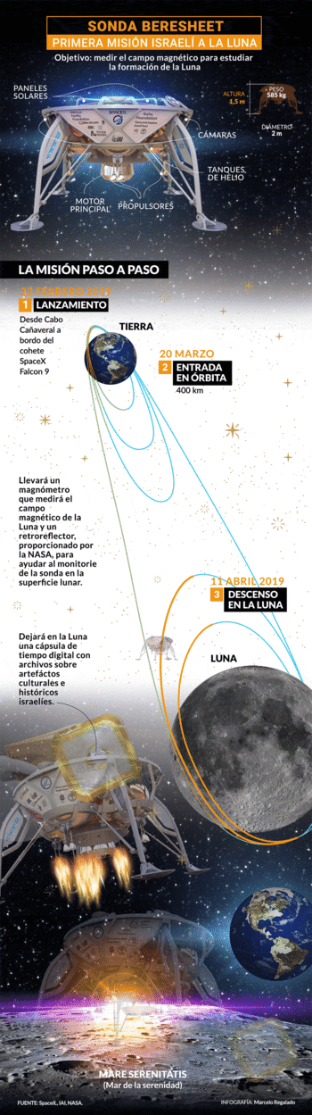Beresheet, construida por SpaceIL e Israel Aerospace Industries (IAI), tuvo como objetivo convertirse en la primera nave israelí y la primera misión financiada de forma privada en aterrizar suavemente en la Luna. Pero el pequeño robot no pudo hacerlo, y se estrelló contra la superficie selenita a las 16:25 hora argentina.