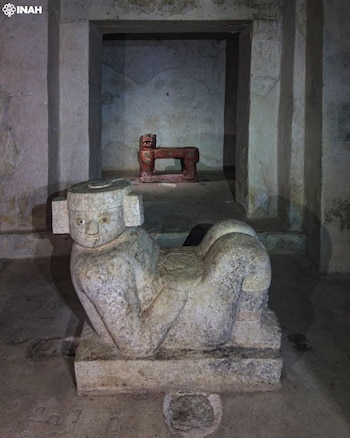 La historia del acceso al interior de El Castillo se remonta a excavaciones realizadas en los 30 por los arqueólogos Eduardo Martínez Cantón y José Erosa Peniche, quienes abrieron un túnel que condujo al descubrimiento de dos espacios internos: la llamada Sala de Ofrendas, donde apareció una escultura de Chac Mool, y la Sala de Sacrificios, con un trono de jaguar rojo.