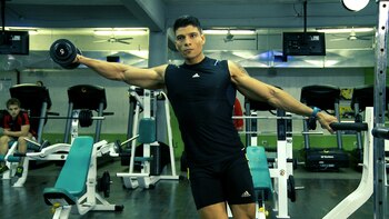 3. Press a un brazo: es una variante de complejidad, que implica músculos de gran parte del cuerpo, como el cuádriceps, abdominales y, fundamentalmente, focaliza la tarea en los deltoides. "El trabajo aislado y con mancuerna generará un trabajo completo y equilibrado para lo deltoides", acotó el especialista.