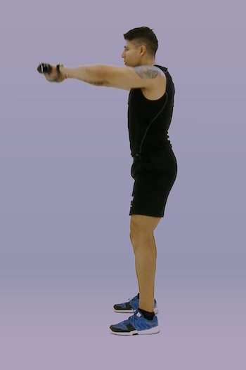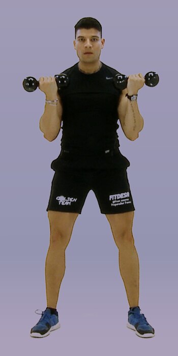 Las mancuernas deben elevarse hasta la altura de los hombros.