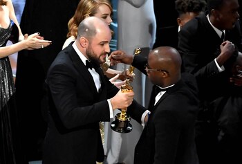 Así Lalaland recibió la estatuilla. Pero el productor Jordan Horowitz corrigió el error: invitó al escenario a Jenkins y le otorgó el premio. No era broma, le aclaró.