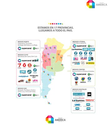 Grupo América es la nueva marca corporativa que representará al conglomerado integrado por América TV, A24, Radio La Red, Supercanal, Diario Uno y Diario La Capital y otras 34 empresas.