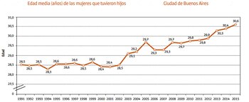 Con la llegada del siglo XXI y los cambios de hábitos de las mujeres se profundiza la tendencia de casarse y concebir a edades cada vez más avanzadas. Un estudio sobre los nacimientos producidos en 2015 en el ámbito de la Ciudad de Buenos Aires reveló que el promedio de edad de las madres superó los 30 años, mientras que el de las primerizas se aproximó a esa franja etaria.