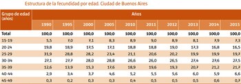El informe subrayó que "hubo un corrimiento en la edad de las mujeres al nacimiento de sus hijos", pues "el grupo 25-29 años registró el mayor peso relativo de la fecundidad hasta el año 2000 y a partir de 2005 se desplazó al grupo 30-34 años". Además aumentó la cantidad de embarazos en mujeres mayores a 34 años.