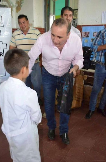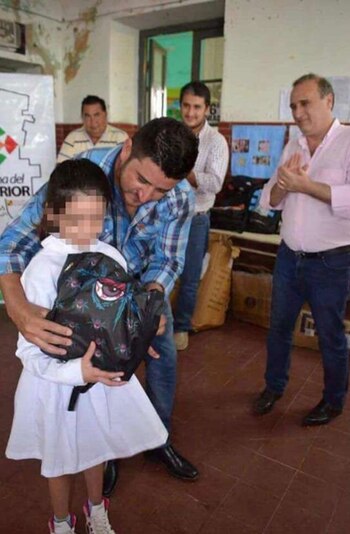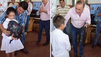 EL jefe comunal estuvo junto a su secretario de Gobierno, Aníbal Padula, en varias escuelas del interior del departamento de Choya. Repartió unas 500 mochilas (de las 3 mil que encargó), se sacó fotos con los chicos y las hizo circular en las redes sociales, hasta que alguien se percató del furcio y ordenó que sean retiradas.