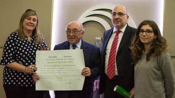 El alumno Román Carballo se recibió de abogado en la Universidad de La Matanza, y recibió su título en la tarde del miércoles 20. Se lo entregó el doctor Luis Busnelli, decano del Departamento de Derecho y Ciencia Política.