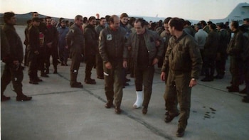 El entonces mayor Piuma –hoy brigadier retirado–, que en esta tarde de viernes 29 está en Infobae con su hijo Maximiliano, también piloto, tenía entonces 38 años.