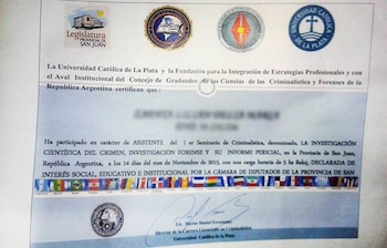 La Justicia de San Juan investiga a una banda que habría estafado a decenas de policías, gendarmes y miembros de otras fuerzas de seguridad con diplomaturas y cursos falsos que adjudicaban a la Universidad Católica de La Plata. Están acusados de liderar esta organización Darío Murúa Torres y Héctor Daniel Fernández.