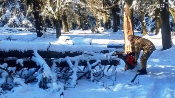 En tanto, en San Martín de los Andes y sus zonas aledañas, intervino el Regimiento de Caballería de Exploración 4 "Coraceros General Lavalle", en actividades como el abastecimiento de agua y repartición de leña y gas envasado en los barrios, apertura de calles, recuperación de vehículos atrapados por la caída de añosos arboles hasta la limpieza de nieve en escuelas públicas y sectores comunes para que los alumnos puedan concurrir a clases con normalidad.