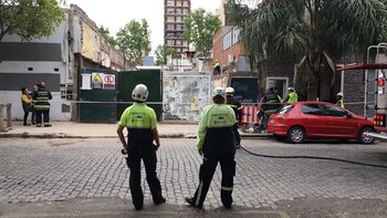 El jefe de bomberos del operativo contó que todavía se está analizando si evacúan el edificio que se encuentra al lado, ya que "hay riesgo de derrumbe".