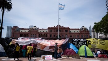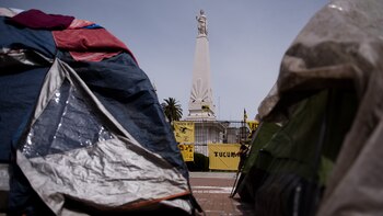 Manifestantes encabezados por Raúl Castells e instalados en una veintena de carpas ubicadas alrededor de la Pirámide de Mayo realizan una protesta en reclamo de viviendas y alimentos. Además, piden justicia por la muerte de Santiago Maldonado.
