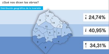 El 34,31% de esa inversión se concentra en las comunas 8, 4 y 9, con obras como la Villa Olímpica, el Hospital Cecilia Grierson o las obras de infraestructura en los procesos de urbanización de los barrios Piletones, Cildañez y Villa 20. Por su parte, la comuna 1 concentra un alto porcentaje de inversión, especialmente por la presencia del Paseo del Bajo, que –en sus tres tramos— suma más de seis mil millones de pesos. Así, la mayor parte de la inversión en obra pública en la Ciudad está destinada a obras de transporte (35,47%) y vivienda (27,14%).