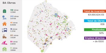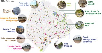 El sitio BA Obras permite navegar todas las intervenciones en un mapa de la Ciudad, y agrupa las obras en siete categorías: escuelas (221 obras), vivienda (46 obras), espacio público (269 obras), arquitectura (132 obras), salud (91 obras), hidráulica e infraestructura (59 obras) y transporte (19 obras). Además, muestra las obras ya terminadas y las obras en ejecución.
