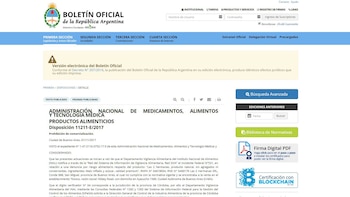 A través de la disposición 11211-E/2017, que fue publicada en el Boletín Oficial de este martes, se estableció la prohibición del artículo "Las dos hermanas, producto natural, sin agregados ni conservantes, ingredientes: Maíz inflado y azúcar, calidad premium".