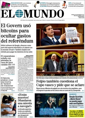 El Mundo también optó por titular con la declaración de un familiar: "¡Están muertos! ¡Mandaron una mierda a navegar!". "La Armada argentina revela una explosión en el submarino el día que desapareció", agrega la publicación.