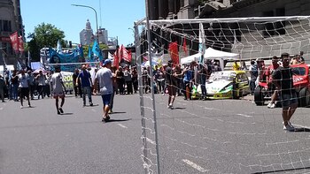 En el marco de una protesta para reclamar por un aumento en el presupuesto de los programas de atención y prevención de adicciones en distintas zonas del conurbano, un grupo de jóvenes instaló dos arcos y empezó a jugar al fútbol en medio de la avenida Entre Ríos, frente al Congreso de la Nación.