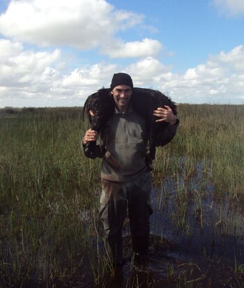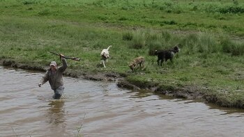 Los tipos tienen toda la pinta de integrar una banda de cazadores furtivos que se atreve, incluso, a depredar los terrenos protegidos de la Reserva Natural Integral de Samborombón, uno de los territorios de vida silvestre mejor preservados de la Provincia de Buenos Aires. Pero no lo son. Bruno Carpinetti es biólogo conservacionista, tiene un doctorado en Antropología, ha sido guardaparques y director de Parques Nacionales, y hoy lleva adelante diversos trabajos de investigación relacionados con los cerdos cimarrones de estas pampas. Salvador Vellido y "el Paisa" Pablo Rojas son guardaparques de larga trayectoria; la única mujer del equipo es Soledad Barandiarán, una veterinaria de la UBA especializada en enfermedades infecciosas que se apresta a meter por primera vez los pies en el pantano. "Nunca había visto cazar de esta manera, había escuchado hablar, pero verlo es otra cosa", dice. Lo que parece caza furtiva es en realidad caza científica para vigilancia sanitaria.
