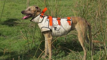 Fierro esquiva un topetazo del cimarrón, atrapa una de sus orejas entre sus fauces y no la suelta. El chancho chilla y se debate de costado sobre el barro. Su misión es "parar" a la presa, y para eso usa los dientes. Volvedora no la muerde, pero vigila alerta sus movimientos. Su trabajo es "empacar", encerrar a la presa, pero no morder. El cuzco se detiene a unos metros, con la cola entre las patas, sin saber qué hacer. Los dos más grandes tienen chalecos protectores que les cubren el pecho y el cuello, para evitarles heridas peligrosas.