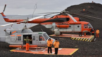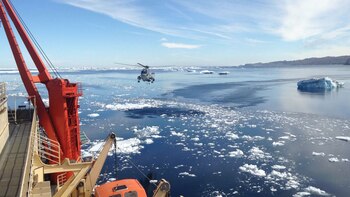 El rompehielos realizó el relevo de personal y material de esta base, con el apoyo de dos helicópteros Sea King embarcados.