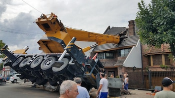 Al menos cinco personas resultaron heridas en la tarde del sábado por el sorpresivo vuelco de una grúa que destruyó el techo de una casa en el barrio porteño de Mataderos.