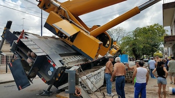 Por precaución se evacuó a los vecinos de los alrededores y se cortó el suministro eléctrico en toda la manzana. En el lugar todavía trabajan los bomberos y cuatro grúas de gran porte para retirar la que volcó.