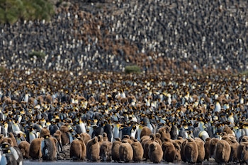 Una de las maravillas postales de la Antártida, la colonia de Pingüinos Rey que habita en el frío continente blanco. La idea de proteger la zona marítima implica también cuidar a esta especie.