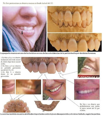 El especialista especificó que la coincidencia se puede lograr gracias a hallazgos ordinarios y a otros, extraordinarios. En el caso de la actual dentadura, se prestó una especial atención al diente lateral incisivo derecho y a una posible irregularidad en una de sus terminaciones.