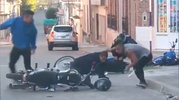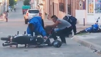 "Los motoristas acudieron al auxilio de dos chicas cuando estos malvivientes aprovecharon la situación y los atacaron; uno empujó al motociclista que se bajó de la moto y lo hizo trastabillar, mientras que el otro dejaba estacionada la moto para auxiliarlo, según se observa en las imágenes, viene otro sujeto y también le tira la moto", dijo el jefe policial al diario local El Once.
