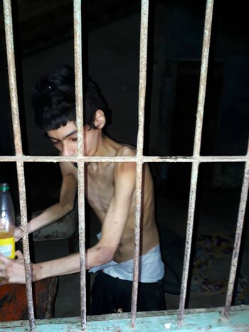 Al consultar sobre el caso a las autoridades del municipio, dijeron a Infobae que el joven discapacitado "está bien cuidado e higienizado", aun cuando el video muestra que la habitación en la que vive muestra todo lo contrario. De hecho, las imágenes dejan ver el importante estado de hambre que sufre, ya que cuando se le acerca un plato de comida no puede ocultar su desesperación.