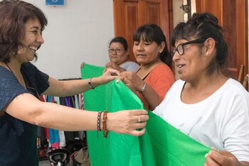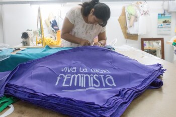 La oportunidad se las dio el Estado, y Marza y sus compañeras fundaron la cooperativa "Diseño de mi Pueblo", un taller que no sólo confecciona ropa y accesorios; también tuvo un rol anónimo pero importante en la visibilización por la legalización del aborto.