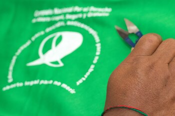 La idea de confeccionar pañuelos se las trajo en 2016 una abogada que las asesoraba. Al principio, todas se miraron entre sí con temor. Criadas en una sociedad conservadora, con una fuerte presencia de la Iglesia católica, temieron ser condenadas en el pueblo, el mismo donde, cuenta Fernanda, si las mujeres iban a la escuela secundaria se decía que lo hacían "para encontrar macho".