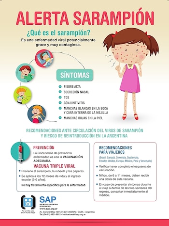 "Hay muchos colegas que tal vez no vieron sarampión", dijo la especialista, que instó a los médicos a notificar a los pacientes con estos síntomas para que se hagan estudios de la enfermedad.