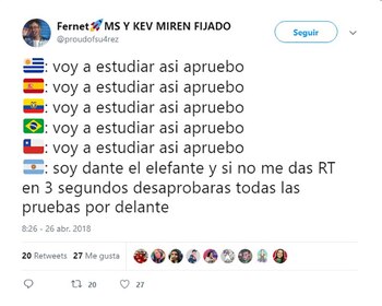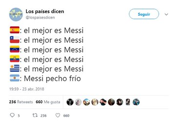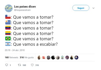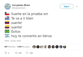 El concepto comenzó a circular en Twitter, entre diferentes usuarios y el éxito fue tal que hasta se creó una cuenta (@lospaisesdicen) donde se tuitean exclusivamente estos mensajes.