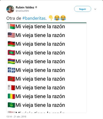 Esos gráficos y nuevas formas formas de hacer humor inundaron el WhatsApp, los chats y todas las plataformas que se quieran nombrar. En esta ocasión, los emoji que están en boca de todos son "las banderitas". No hay nada nuevo sobre ellas pero lo interesantes es que despertaron un verdadero fenómeno en Twitter.