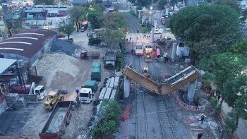 Ahora, personal de la ciudad se encuentra en el área del accidente realizando tareas para remover el cemento y quitar la estructura para liberar las vías.