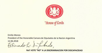 "Le escribo como colega parlamentario para pedirle su apoyo en la votación de mañana sobre un tema que tiene una gran importancia personal para mis, para sus ciudadanos con discapacidad (y) para todos aquellos que creen en la igualdad de todos los seres humanos".