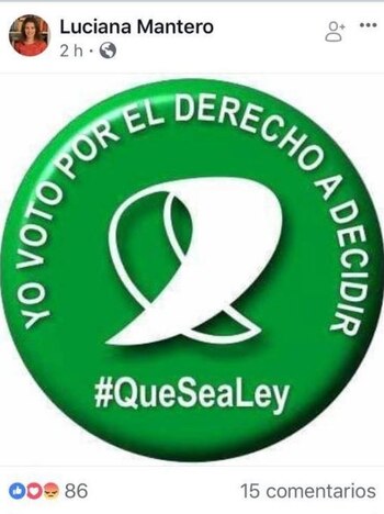 Lo hizo a través de redes sociales. Compartió una imagen del icónico pañuelo verde con la leyenda "Yo voto por el derecho a decidir" #Que SeaLey".