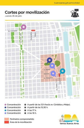 FOL, MTD, FPDS, Frente arde rojo, MTR y otros. Concentración en la intersección de Av. 9 De Julio y Av. Córdoba. Se espera que se movilicen hacia Av. Córdoba entre Esmeralda y Maipú.