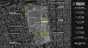 Pero el proyecto se propone ir más allá. A 120 metros de la Plaza Clemente se creará el Parque Audiovisual, otro espacio verde de 6.750 m2 ubicado entre Av. Dorrego, Zapiola, Concepción Arenal y Freire, en el 65% del terreno que hoy ocupa el predio ferial El Dorrego. Las obras generarán 14.030 m2 de nuevo espacio verde y público, alcanzando un total de 33.137 m2 en toda el área.
