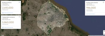 En la plataforma, que aún está en formato beta, los datos están disponibles gratuitamente en cuatro categorías: emisiones de construcción, emisiones de transporte, potencial de compensación de energía y proyecciones climáticas a 20 años. Al hacer clic en "Generar emisiones", por ejemplo, aparecerán mapas detallados que establecen el impacto de las emisiones tanto en viviendas como en edificios no residenciales.