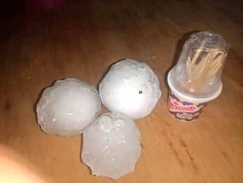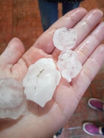 Como suele suceder ante cada fenómeno meteorológico, la gente aprovechó la ocasión para retratar las distintas postales con sus cámaras de fotos. Algunos lo hicieron para mostrar el considerable tamaño de las piedras.