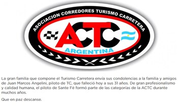 La muerte fue confirmada por la Asociación Corredores de Turismo Carretera (ACTC) a través de un comunicado, que destaca el "gran profesionalismo y calidad humana" del deportista santafesino.