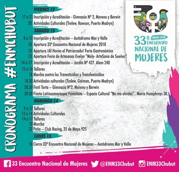 Llegó el día: hoy arranca el 33º Encuentro Nacional de Mujeres (ENM) que se llevará a cabo en Trelew (Chubut) hasta el próximo lunes, con una importante convocatoria que ronda las 50 mil personas.
