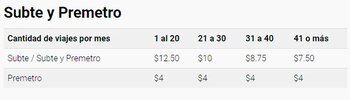En tanto, el Subte cuesta desde agosto pasado $12,50 hasta 20 viajes (posterior a estos pasajes hay una reducción en la tarifa), mientras que el Premetro sale $4.