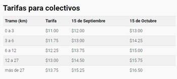Los tramos que van desde los tres hasta los seis kilómetros saldrá $14,25; entre seis y doce kilómetros, $15; entre los 12 y los 27 kilómetros costará $15,75. El pasaje más caro en los micros urbanos tendrá un valor de $16,50 y será para trayectos de 27 kilómetros o más.