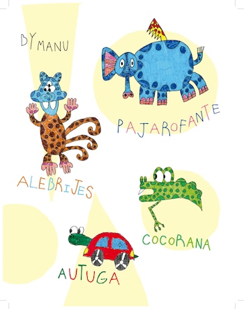 "La mezcla de animales y los animales con ocho patas, cinco ojos o un solo cuerno hablan de la libertad de Manu y, según infiero, de la diferencia. Se salen de la norma. Manu les pone color y los incorpora a la escala zoológica, los incluye con alegría", dice por su parte Tute, que escribió una historia sumamente atrapante de los únicos dibujos distintos en el libro, que hizo en su taller de plástica.