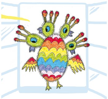 Su madre hace la misma lectura. "Él dibuja algo que le viene de adentro de un solo trazo: no borra, no tira, no duda, no vacila", dice. "Todos sus dibujos tienen que ver con la aceptación de la diferencia. Una vez estábamos en Córdoba y él dibujaba ranas de tres, cinco, seis, siete patas. Yo le dije que la de cuatro patas no estaba y él me contestó: 'No, porque esa es la normal". Además, los primeros eran todos en blanco y negro y después los invadió el color.