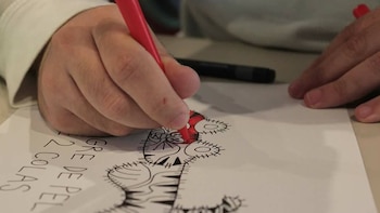 Pero María cuenta que su hijo dibujó "desde que tuvo un lápiz en la mano" y que una vez avanzado el tratamiento, de repente, ella y su marido empezaron a notar que el cambió se gestaba desde ahí. "Como Oliver Sacks veía en sus pacientes reacciones a la música, yo empecé a ver que cuando él dibujaba había una reacción, vi que ese era un lugar tranquilo y dije 'es esto'".