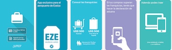 Con el objeto de facilitar el trámite, la AFIP habilitó una aplicación para hacer la declaración jurada desde el celular. Se trata de la App Viajeros, que está disponible para iOS y Android y es de uso exclusivo para el aeropuerto de Ezeiza.