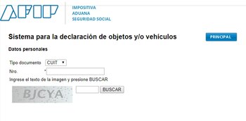 -Clickear en Sistema para la declaración de objetos y/o vehículos la opción "realizar declaración".